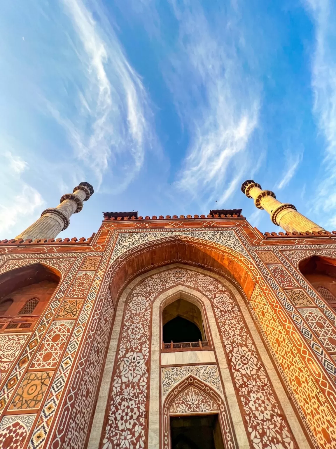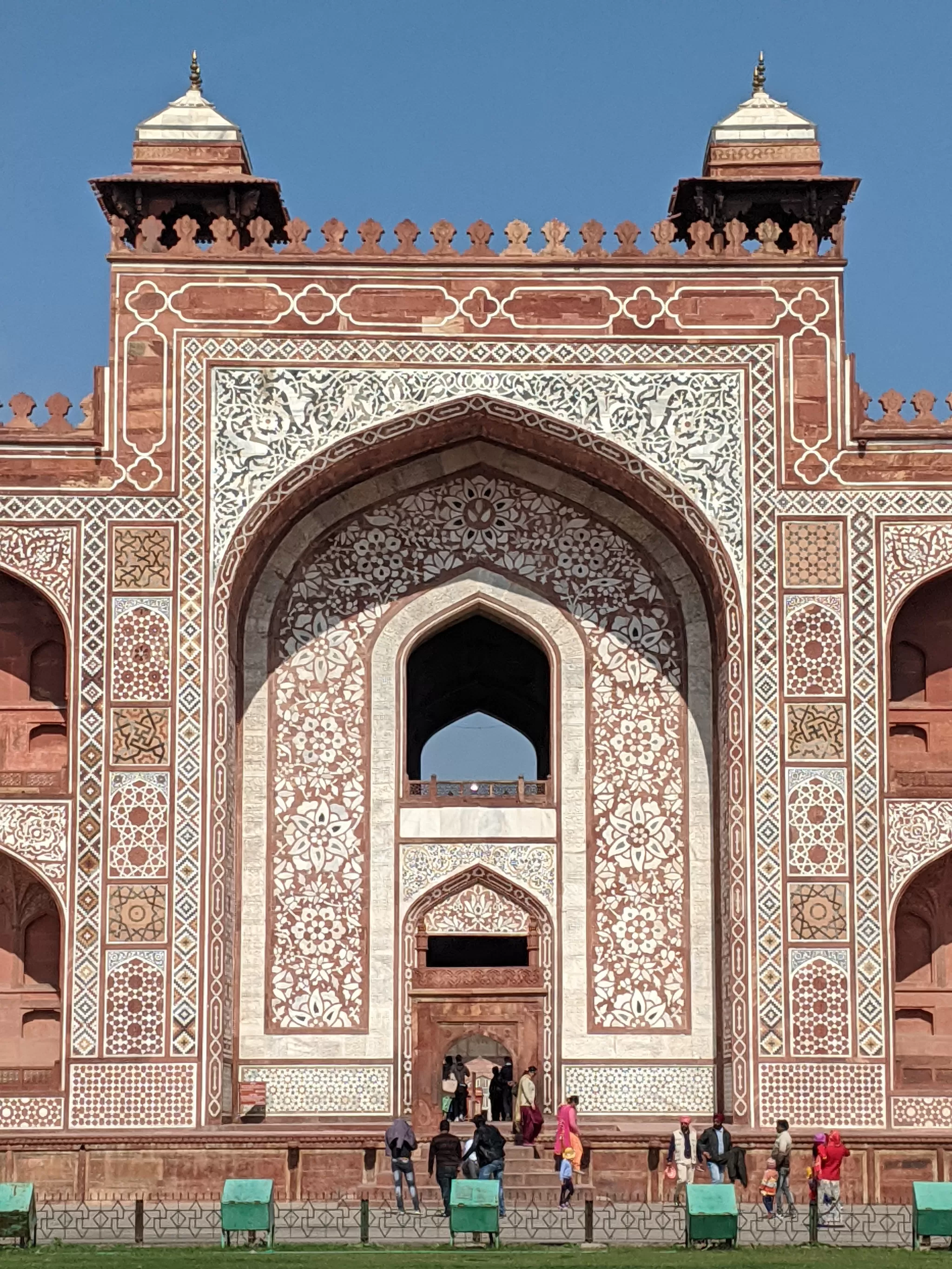 The main gate is a massive and impressive structure, that serves as the entrance to the tomb complex. It is made of red sandstone, and decorated with white marble inlays, calligraphy, and floral motifs. It has four minarets at the corners, and a large arch in the center, that leads to the tomb building. The gate also has a small mosque on the left, and a guest house on the right, for the visitors and pilgrims.