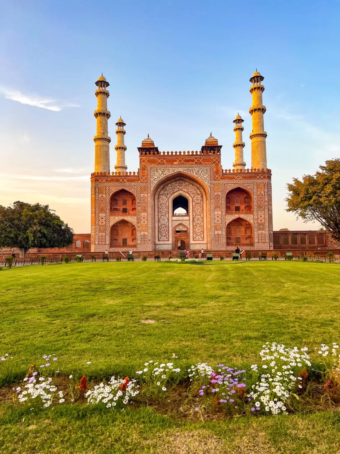 The garden of Akbar Tomb is planted with a variety of trees, flowers, and fruits, that provide shade, fragrance, and nourishment. Some of the trees that can be found in the garden are mango, guava, banana, jamun, neem, and peepal. Some of the flowers that can be seen in the garden are jasmine, rose, marigold, lotus, and hibiscus.