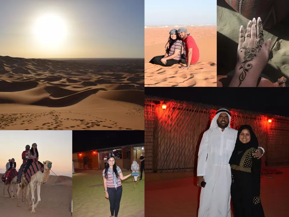Dubai Miracle Garden is a miracle indeed. This garden which is open for about six months every year has millions of colorful and pretty flowers arranged in various shapes and formations. It is just beautiful and fairyland like! The tickets can be purchased at the ticket counters for 50 AED. It is recommended to arrive early to avoid crowds. Dubai Desert Safari – The highlight of a desert safari is the Dune Bashing. You will literally go up and down, curving and dashing along the dune just like in a video game. Our tour included a photo stop and sand boarding activity in the middle of the desert and a camel ride post Dune Bashing. Once we entered the camp, there were a couple of activities such as Photo with a Falcon, Traditional Arab Clothing, and Henna Painting. The entertainment shows included a Fire Show, Tanura Dance Show and Belly Dance Show. The dinner provided had a lot of variety and was delicious.