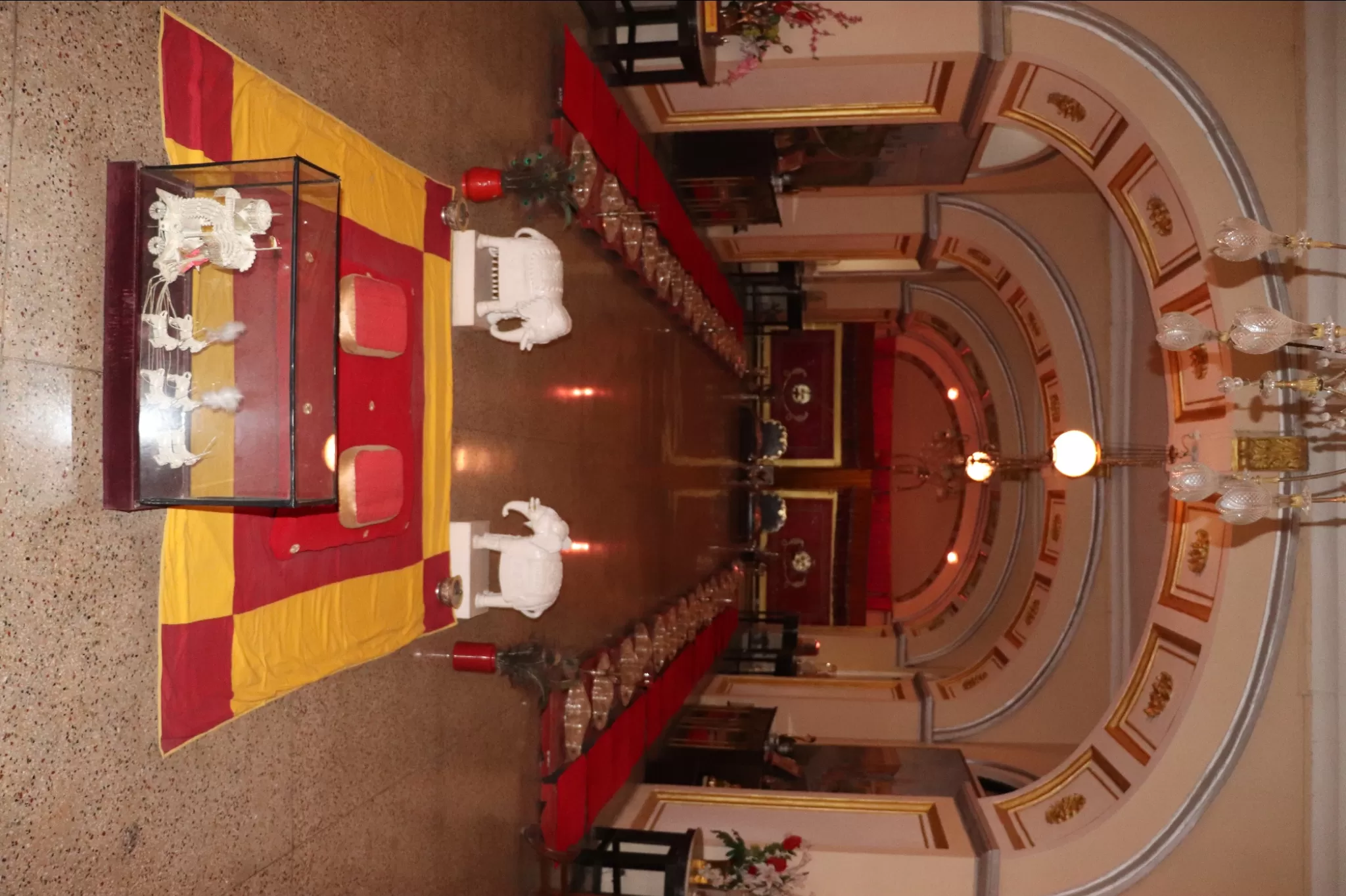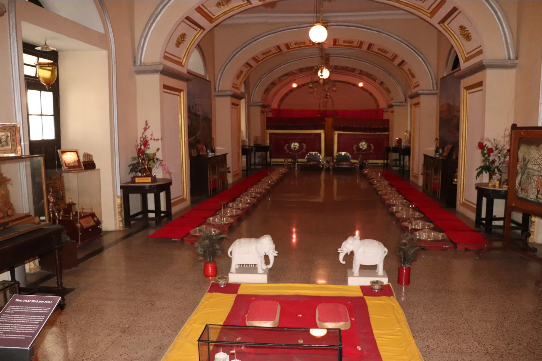 The Crystal Gallery, which has a display of crystal furniture, such as tables, chairs, sofas, beds, etc., which were ordered by Maharaja Jayajirao from the F&C Osler Company of England, but never used by him.