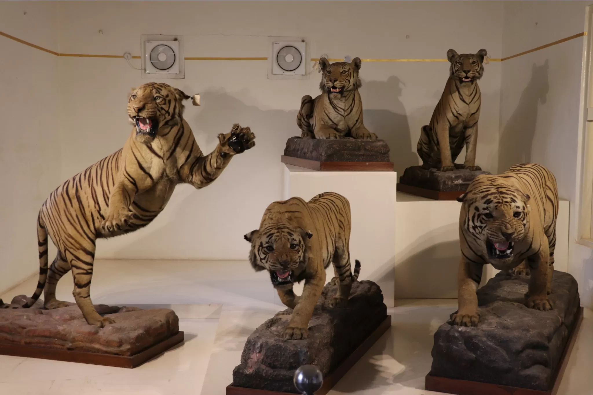 The museum wing of the palace was established by Rajmata Vijayaraje Scindia, the widow of Maharaja Jiwajirao, in 1964. The museum showcases the rich and diverse collection of the Scindia family, which includes artifacts, paintings, weapons, jewellery, silverware, and more. The museum has 35 rooms, each dedicated to a different theme or aspect of the royal lifestyle, the war history, the cultural diversity, and the artistic excellence of the Scindia dynasty and Gwalior city. Some of the highlights of the museum are: