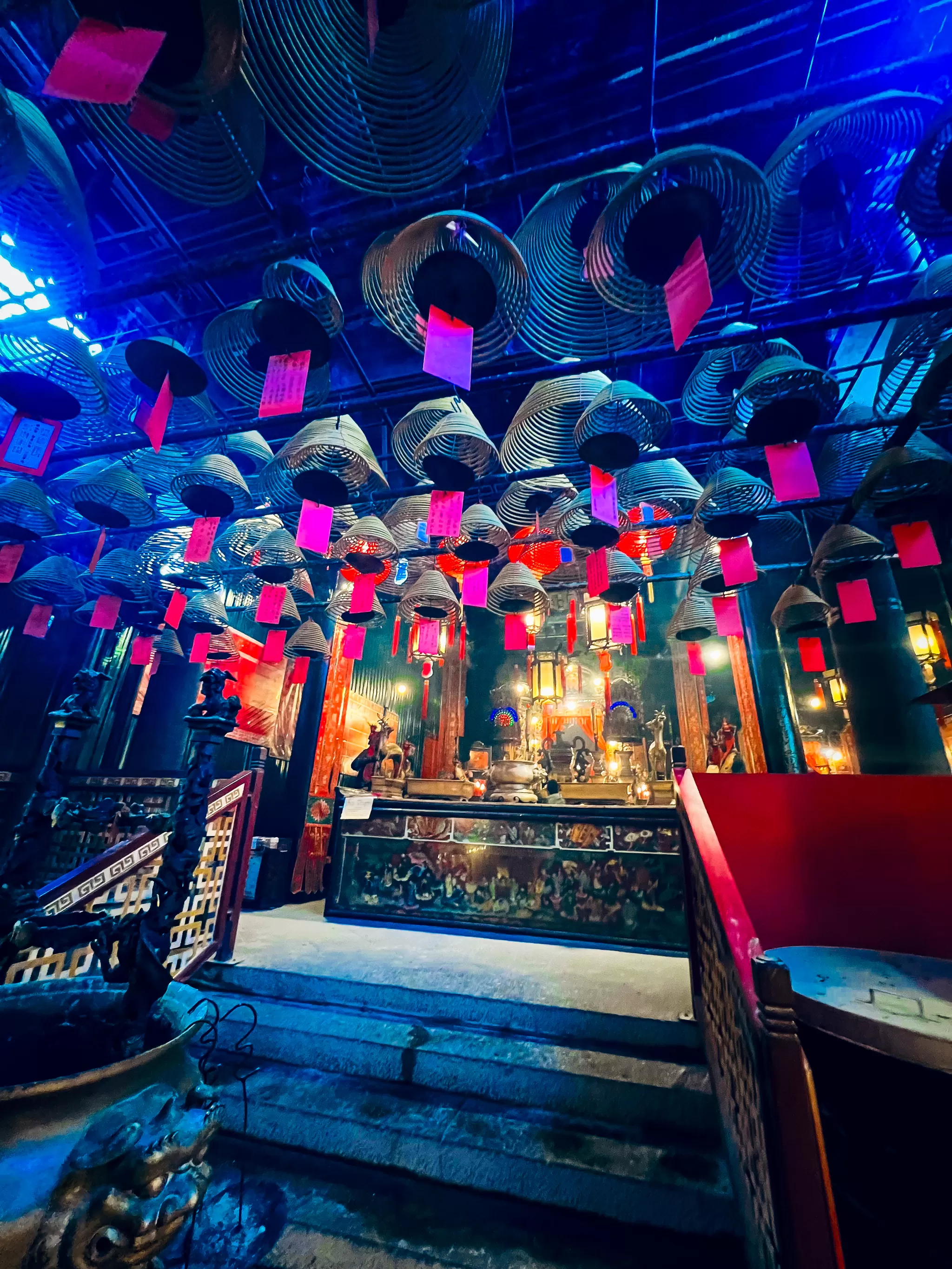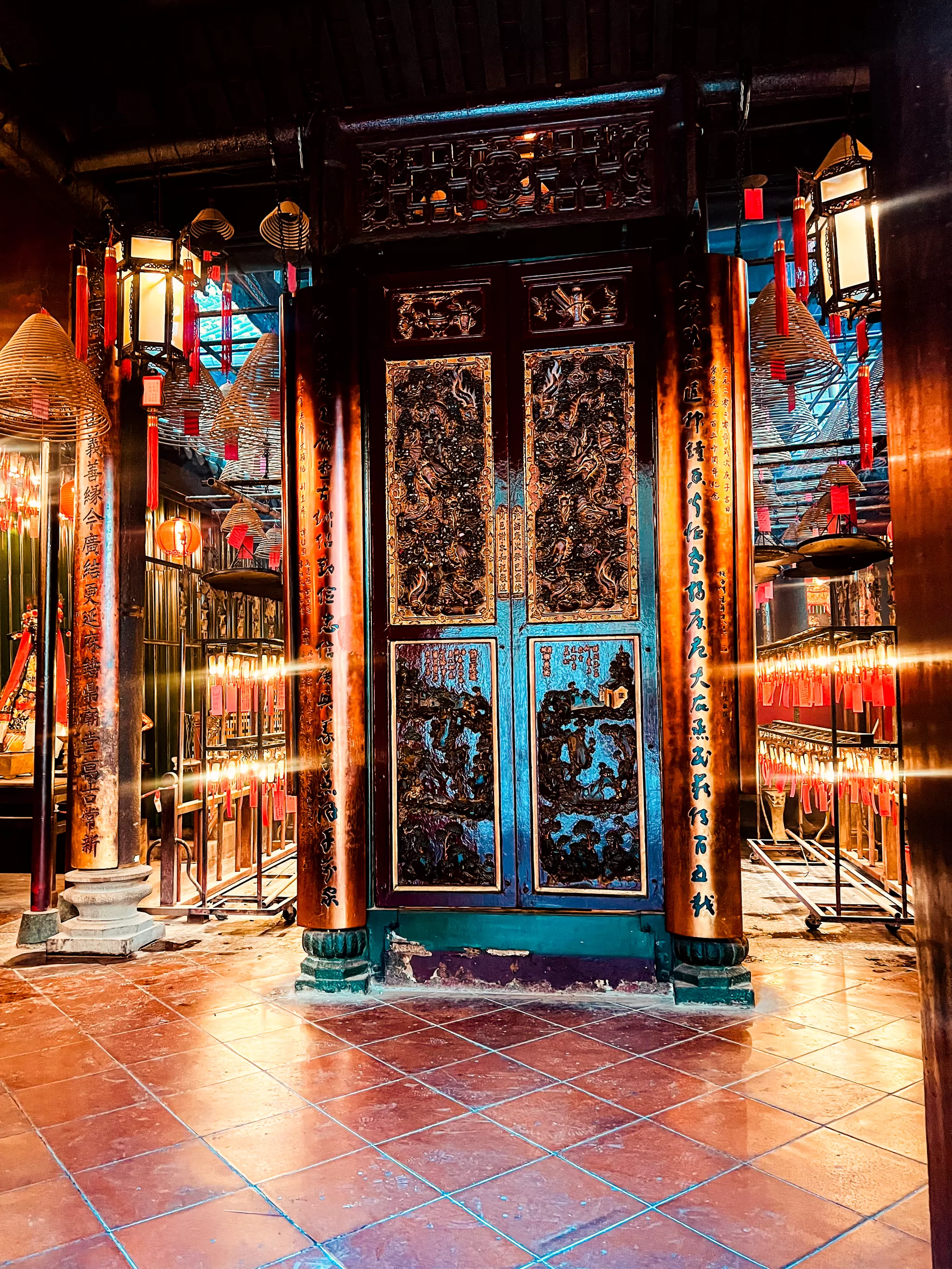The temple has a rectangular layout, with a main hall, two side halls, and a courtyard. The main hall is the most important and impressive part of the temple, as it houses the statues of the two gods, Man and Mo. The main hall is also filled with incense coils and lanterns that create a mystical and mesmerizing atmosphere. The incense coils are hung from the ceiling and are lit by the worshippers as a way of praying and thanking the gods.