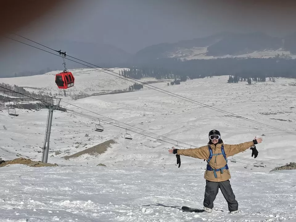 After a good night sleep, I finally hit the mountains! Fayaz, my new buddy, helped me to get a ticket, and together we embarked the gondola. Trusting this masterpiece of new French technology, I could fully enjoy the ride. Not a single cloud covered the mountains, and I had a stunning view over the Kashmir valley, surrounded by mountains as far as you can see. Halfway up, we disembarked and walked to the ski lift. It was already past 10 am, and to my astonishment, he was still motionless. As we slowly approached the booth, they turned on the engines – for their very first guests of the day!