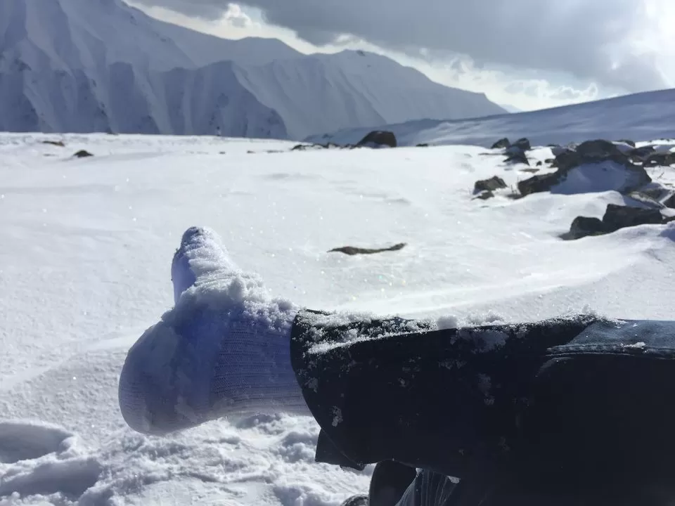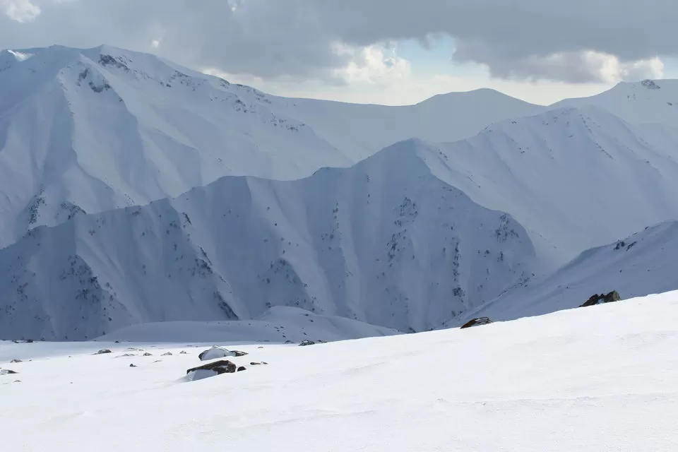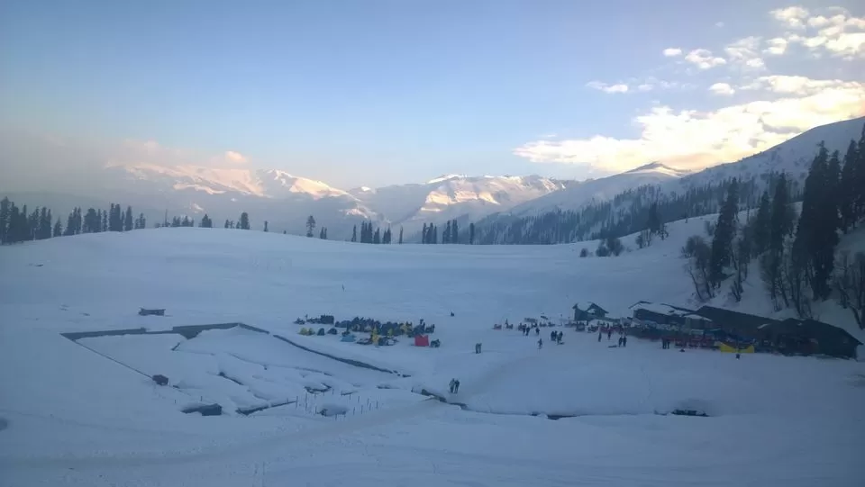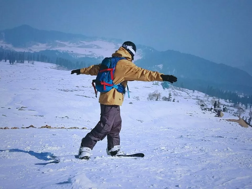 Gulmarg itself reminded me a lot of small Swiss mountain villages, a few wooden houses tucked along a curvy road, surrounded by a forest. In the center, there was not a market square nor houses, but a vast plain, where people were riding snowmobiles or tried standing on skis. I wonder if there once was a crystal-clear mountain lake? I did not find an answer to that but instead received all my snowboard equipment. The brothers drove me to their friend’s shop, to equip me with all necessities: snowboard, boots, ski dress, gloves, goggles, helmet, shovel and a beeper. Within a few minutes, I was ready to hit the slopes – or rather the uncombed backcountry, as I learned the next day. I was stunned by the efficiency and professionality of this little shop – and more than happy about the low price he made me, he gave me a substantial friendship discount.