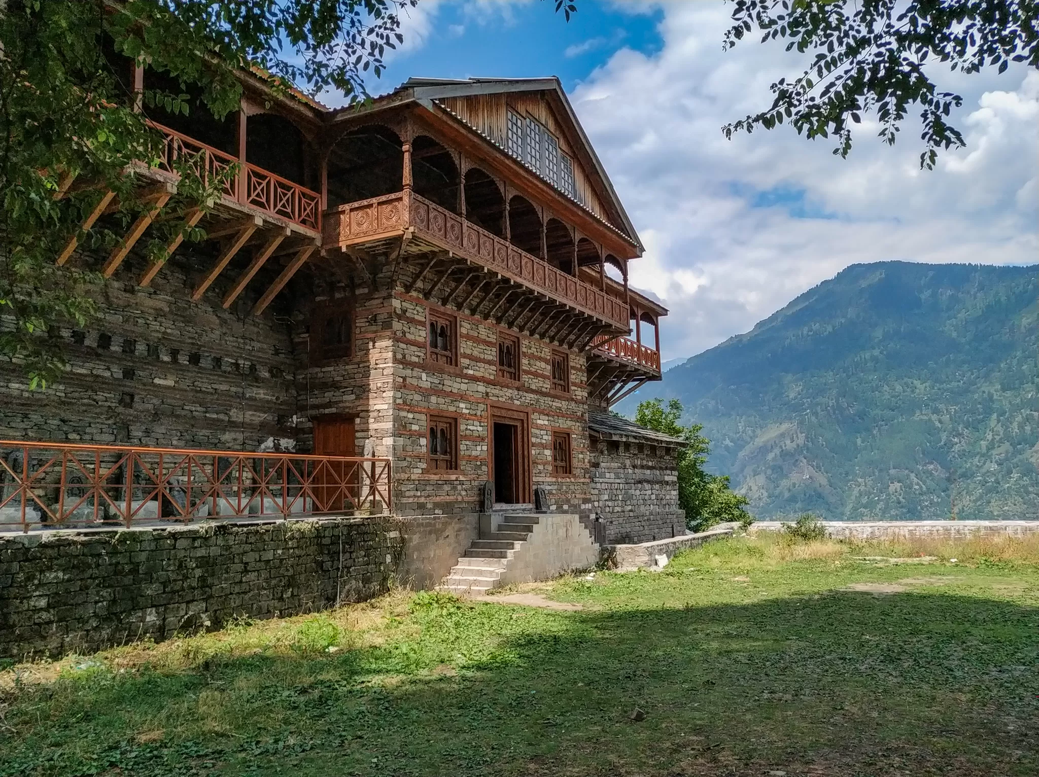 Naggar Castle is a splendid example of traditional Himalayan architecture. The castle is made of wood and stone, which are locally available and suitable for the cold climate. The castle has a pagoda-style roof, which is typical of the hill temples. The castle has three stories, with a courtyard in the center. The castle has a balcony that offers a panoramic view of the valley, the river, and the snow-capped mountains. The castle also has a fire place, a temple, and a museum inside.