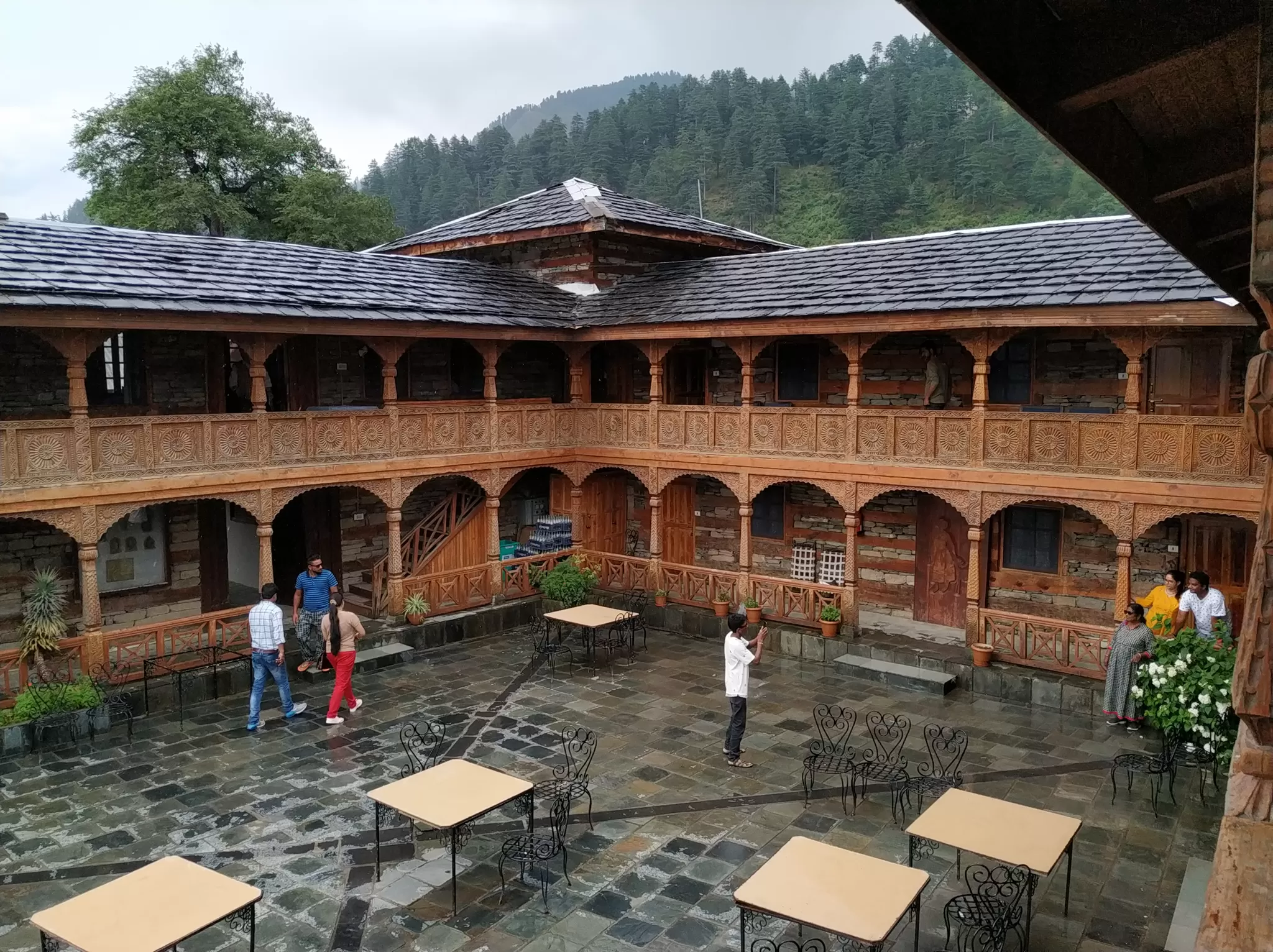 The castle has a restaurant that serves delicious and authentic Himachali cuisine, as well as continental and Chinese dishes. The restaurant also has a bar that offers a variety of drinks and snacks. You can enjoy your meal while admiring the scenic view from the balcony or the courtyard.
