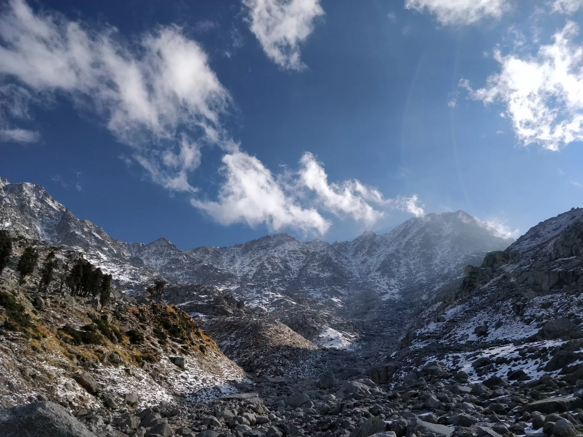 The indrahar pass trek offers a unique opportunity to witness the stunning contrast between the lush green Kangra valley and the barren Chamba valley, as well as the majestic views of the snow-capped peaks, glaciers, lakes and meadows of the Dhauladhar range. The trek takes you through diverse and scenic terrain, such as forests, grasslands, rocky slopes, snowfields, streams and waterfalls, where you can admire the beauty and diversity of nature.