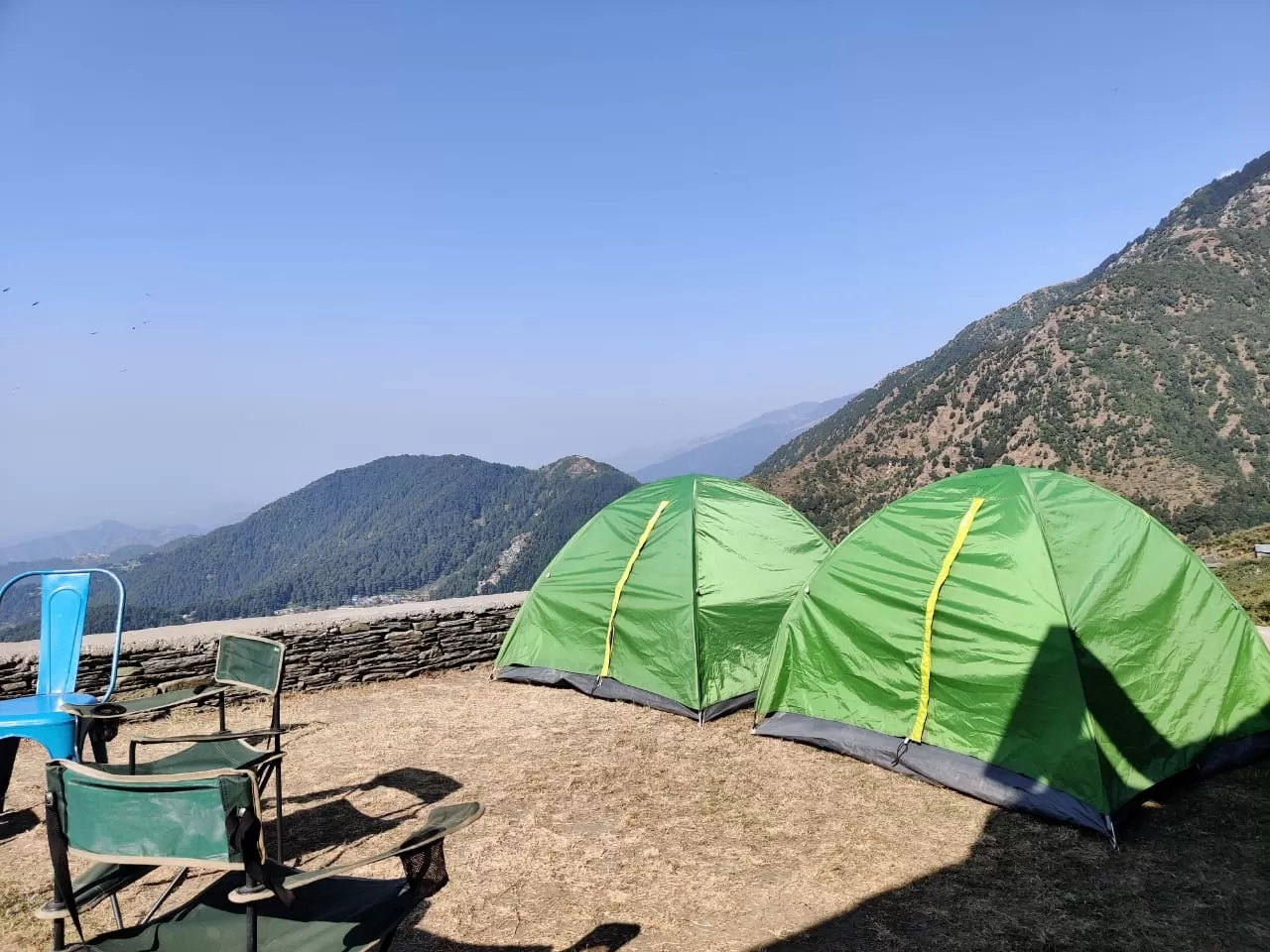 This is a campsite that offers adventurous and fun tents, with amenities such as sleeping bags, mattresses, pillows, etc. The campsite also has a common washroom, a bonfire, a barbecue, and a parking facility. The campsite is located about 2 km from Naddi View Point, and offers a rustic view of the mountains and the valley. The campsite charges Rs. 500 to Rs. 1000 per night, depending on the type of tent and the season. You can book the campsite online or offline, from various portals or agents.