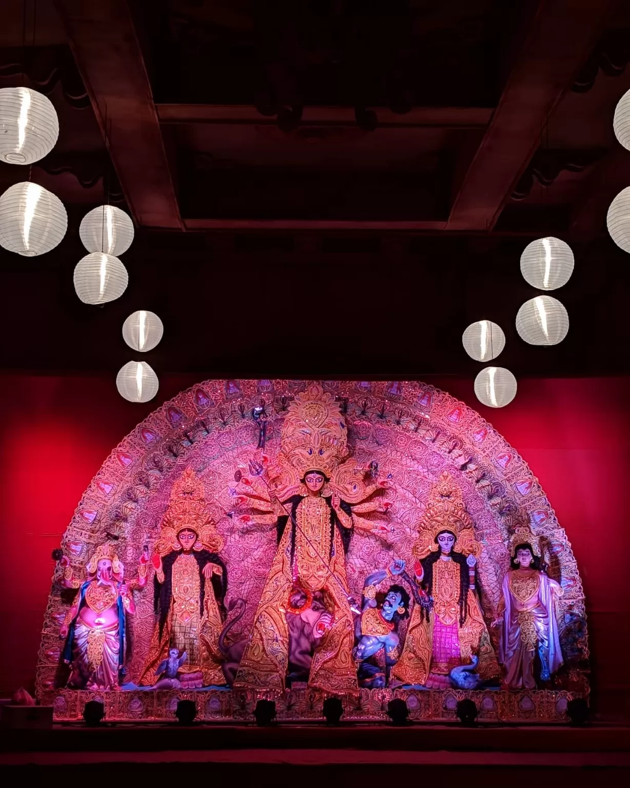 Durga Puja in CR Park is a spectacle to behold, as the entire area is transformed into a festive zone, with over 40 pandals (temporary structures) and thousands of visitors. Each pandal has its own theme, design, and decoration, and showcases the artistic and creative talents of the Bengalis. The pandals also house the idols of the goddess and her four children, Ganesh, Lakshmi, Saraswati, and Kartik, which are made of clay and painted with bright colors. The idols are worshipped with rituals, songs, and offerings, and are immersed in water on the last day of the festival.