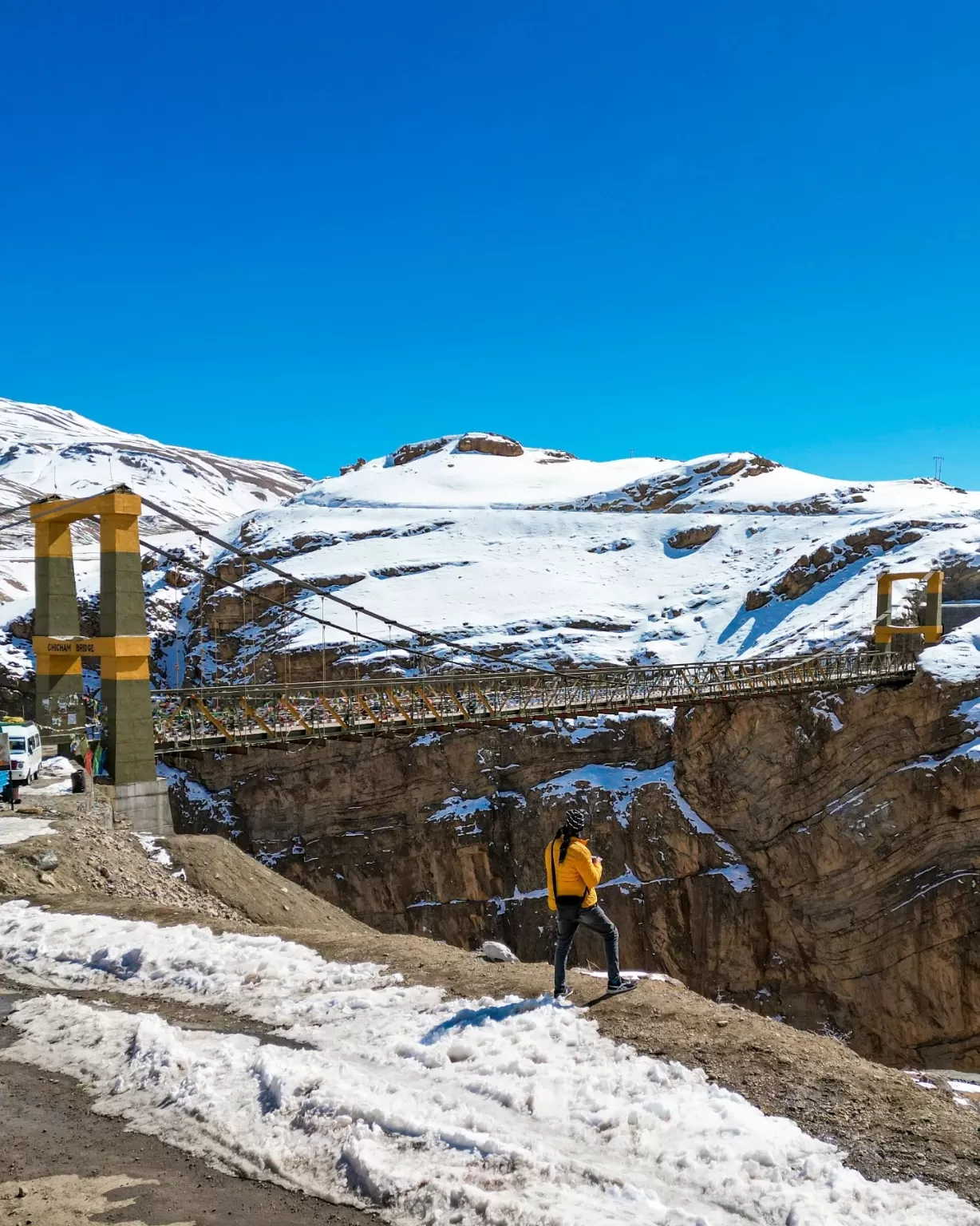 Chicham Bridge is located in Spiti Valley, a high-altitude desert region in the Himalayas that is part of the Lahaul and Spiti district of Himachal Pradesh. Spiti Valley is accessible by road, by air, or by rail, depending on your preference and budget.